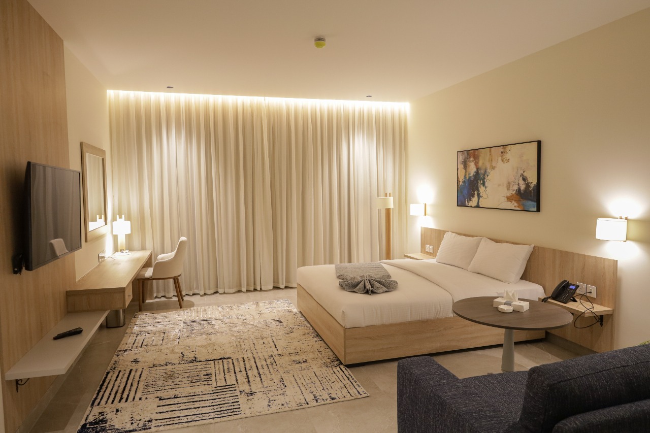 A spacious and elegantly designed room featuring a comfortable king-size bed, premium amenities, and a relaxing atmosphere for a pleasant and restful stay.